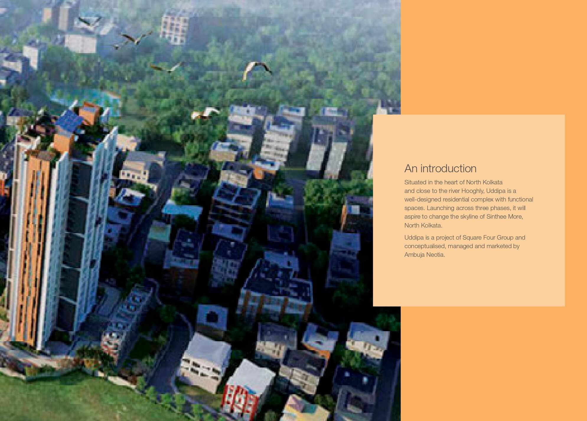 Situated in the heart of North Kolkata and close to the river Hooghly, Uddipa is a well-designed residential complex with functional spaces. Launching across three phases, it will aspire to change the skyline of Sinthee More, North Kolkata. Uddipa is a project of Square Four Group and conceptualised, managed and marketed by Ambuja Neotia.